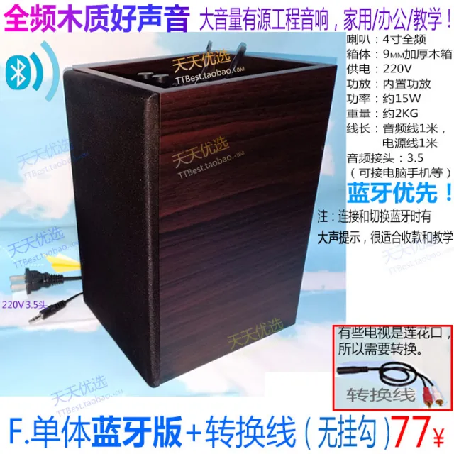 블루투스스피커 낱개 큰소리 대출력 점포 교실 스피커 벽걸이식 나무 컴퓨터 멀티미디어 근원있는 블루투스, T06-F.단량체 블루투스버전+전환선-괘념치 않다