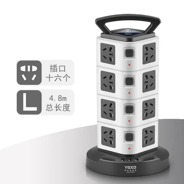 Yeguang 다기능 멀티탭 충전기 아이디어 상품 가정용 USB 충전 소켓, 낙뢰 방지 검은 색 4 층, 총 길이 4.8 미터, 고전압 및 초 전력 보호MB