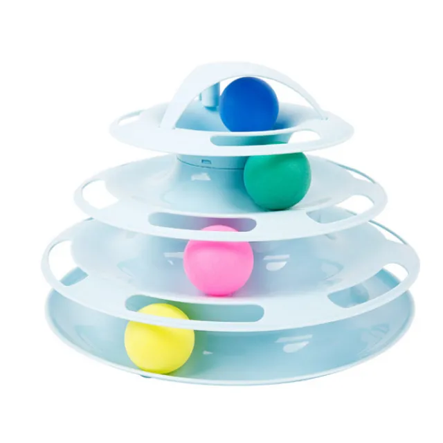 레토 고양이 회전 공놀이 3단 트랙볼 장난감, 블루, 1개