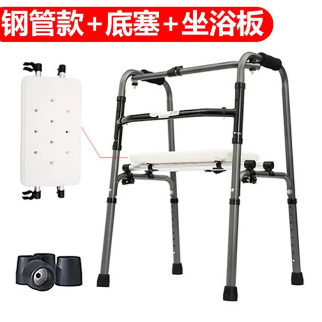 노인 보행보조기 바퀴워커 걸음보조기_보행 목발 노인 지팡이 네 발 미끄럼 방지 워커 골절 목발 보조 보행 장치 팔걸이 프레임 목발, 개, 스틸 워커 + 하단 플러그 + 가역 식 앉은 목욕 버전
