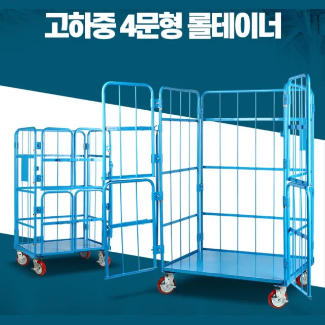 물류창고 쇼핑센터 물류 철대차 대형카트 고하중운반 접이식구루마 수레, 4문형롤테이너