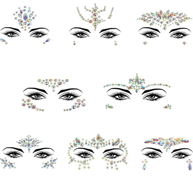 Cobinaan 야광운 얼굴 보석 축제 당 10 개 세트 글로우에서 어둠의 공주 얼굴 보석 축제 발광체 보석 모조, 상세페이지참조, none