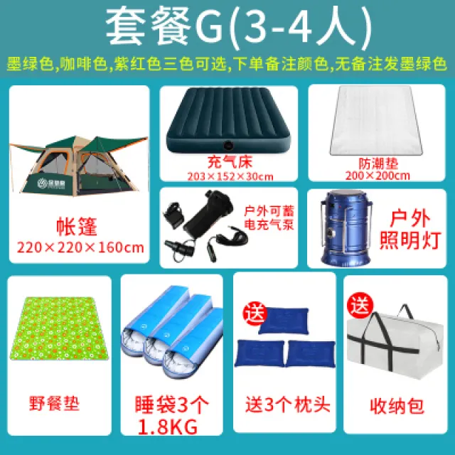 팝업텐트 푸른풀 방높은 장막야외 캠핑 자동 3 4인용두께 방수 더블 망사 장부, T09-세트 G 구매
