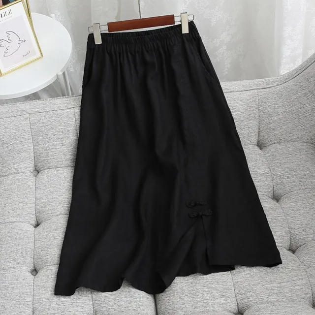 REDLIFO 여성 린넨 캐주얼 스커트 름 반오픈 하이웨스트 면 마 캐주