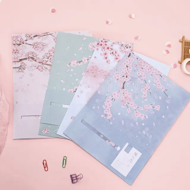 편지지 차이나스타일 벚꽃 편지봉투 컬러 연서 심플 학생 세트포장 상큼 아트 복고, T05-편지봉투 편지지--사직서--화이트