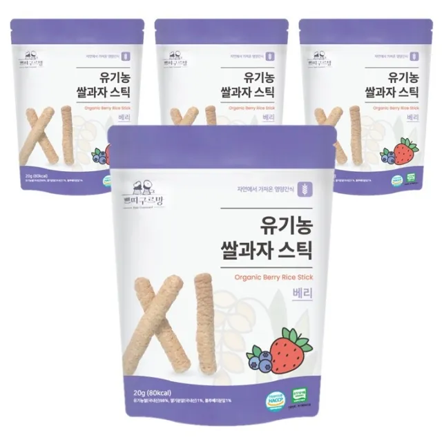 쁘띠구르망 유기농 쌀과자 스틱 20g, 베리, 4개 구매