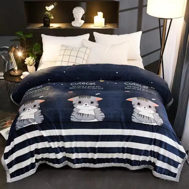 무릎담요 산호 모직 담요 침대매트리스 깔기침대 두꺼운 보온 침대시트 기모 겨울용 작은이불 한벌 플란넬, C23-고양이