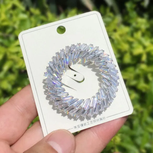여성 패션 브로치 큐빅 브로치가 고급스러운 inspecial shape의 고급스러운 브로치 네크라인 핀으로 고정되어 있어 옷고름 방지 버튼
