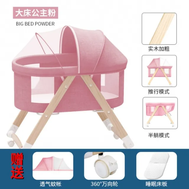 아기 침대 이동식 접이식 휴대용 신생아 요람 침대 bb 다기능 아기 위안 흔들 침대, 퀸 프린세스 파우더 [반쯤 가능] + 모기장