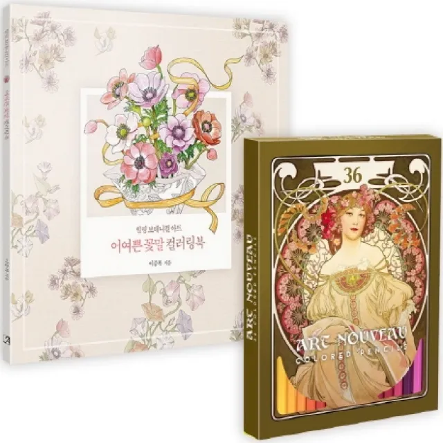어여쁜 꽃말 컬러링북+아르누보 색연필 36색, 아르누보