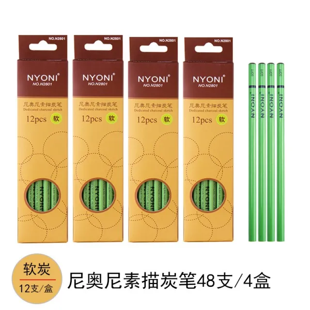 연필 NYONI소묘 세트포장 2 4b6b8b12b14b전문 회화 소묘 미술 전용 스케치 펜초보자 나긋 콩테 유연탄 그림 공구, T19-네오니 B12개/케이스