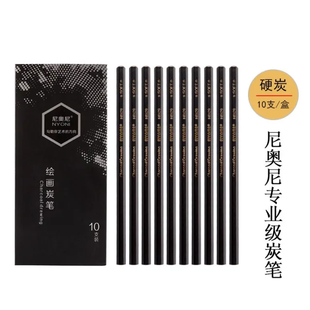 콘테 nyoni콩테 유연탄 중탄 단단한숯 미술 회화 소묘 스케치 사생그림그리기 전용 콩테, T12-전공-니 오니 카본(10개/케이스)