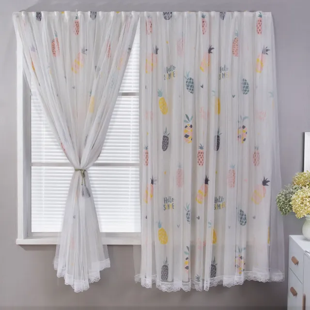 마술 아플리케 커튼 자체 점식 프리펀치 설치 간편한 미니 숏 윈도우 침실 차양 천 차폐, 와이드 15x하이 15, 파인애플 mdash패브릭 실크 1체증