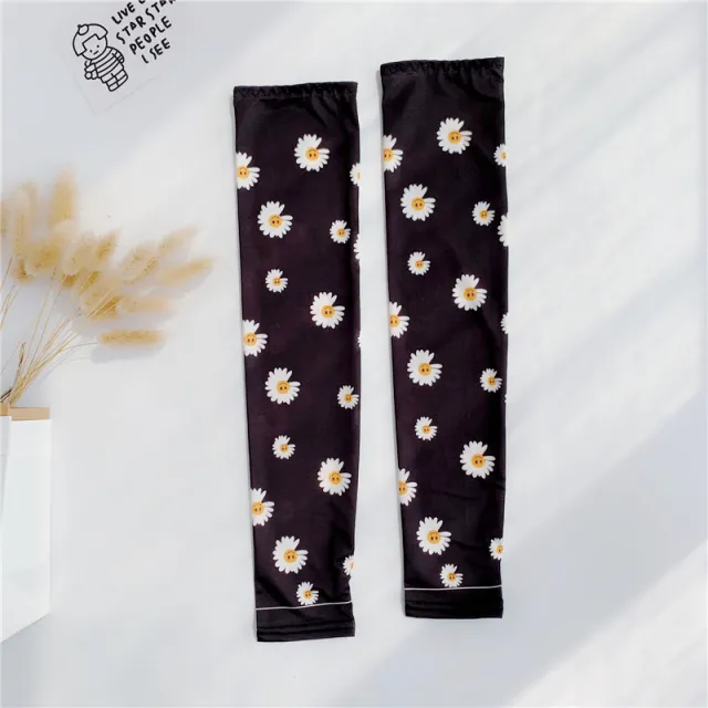 여름 캐릭터 아이스 슬리브 여 팔 자외선 차단 운전 라이더 장갑 얇은, 웃는얼굴 데이지 블랙