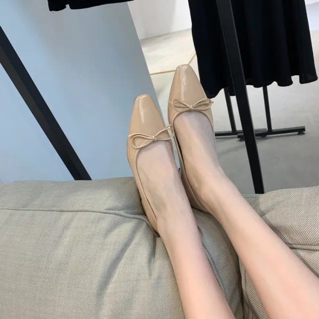 스틸레토힐 숙녀 모양 ~ 스커트 부드러운 에나멜 뾰족한 리본 하이힐 통굽 미드힐 얕은 단화