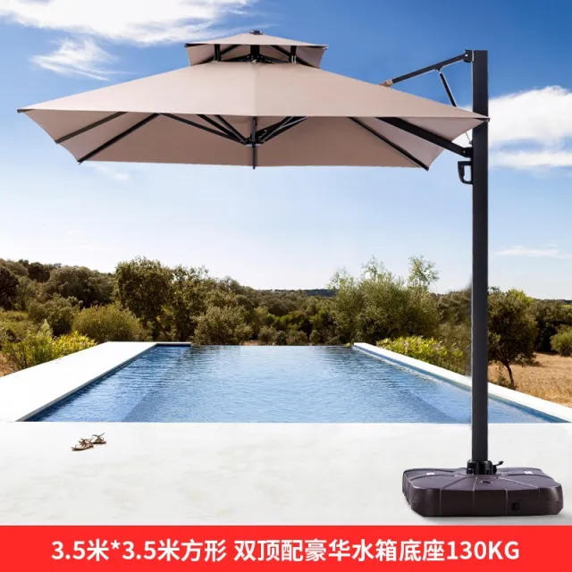 옥상그늘막 횡단보도그늘막 타프 그늘막 야외 파라솔 파티오 야외 포장 마차 테라스 정원파라솔 발코니 사이드 파라솔 정사각형, 색상 분류: 3.5m * 3.5m 정사각형 더블 탑, 고급 물 탱크베이스 130KG 구매