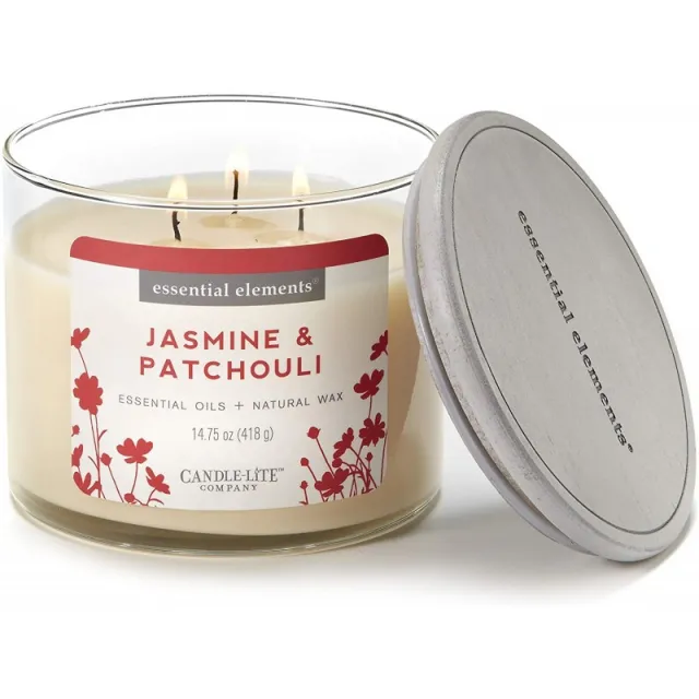 Essential Elements by Candle-Lite Company 향 자스민 & 파출 리 3-Wick Jar Candle 14.75 oz Off White, 단일옵션 구매