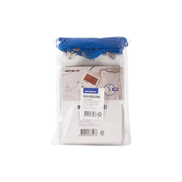 W47A625L 10개 파랑 학생증 출입증세트 방문증 네임텍 단체모임 신분증 목걸이명찰 케이스세트 세로 이름표 관광 목걸이홀더 행사 여행 구매