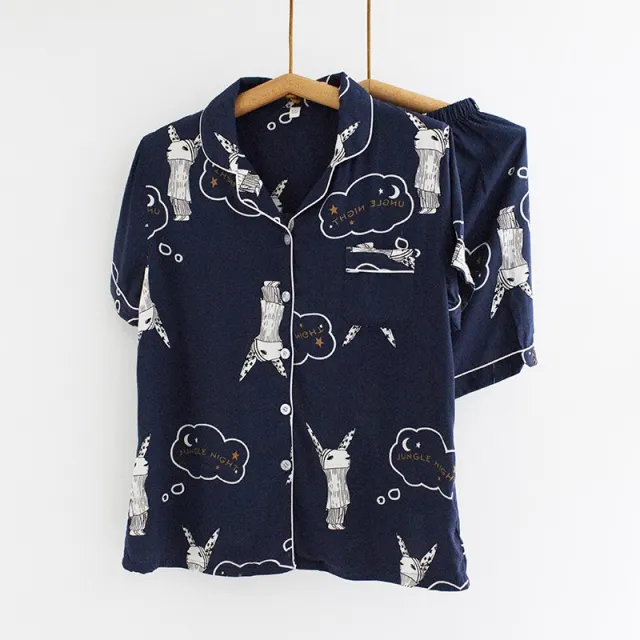 커플잠옷 여름용 순면 반팔 라운지웨어 사라 남극인 22종 쇼츠 브라 티거 반팔반바지세트