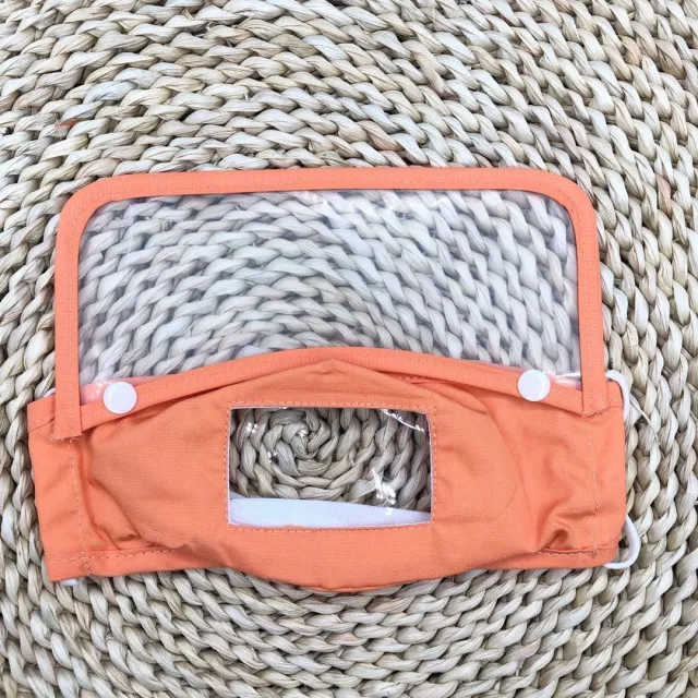 가시화 마스크 농아 전용 순면 면직물 방호 일체 안면보호마스크, 가시 탈착 귤색