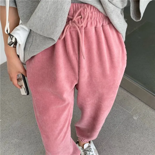 복고등 코르덴 조거팬츠 여성 밴딩웨스트 스트랩 드롭 드레이프 작은 키 캐쥬얼 운동 바지 구매