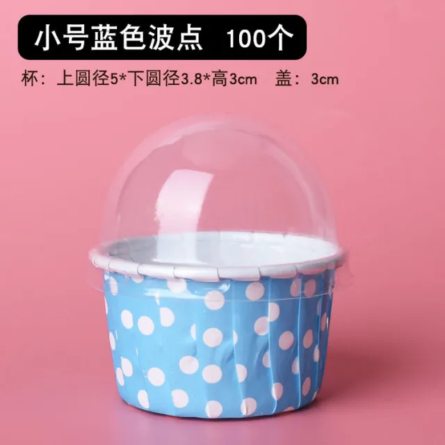 종이컵 (한몫 100개)케이크만드는 가정용 베이크 고열잘견디는 찔수있는 컵받침, 1개, T01-스몰사이즈 블루 도트(뚜껑포함)100개