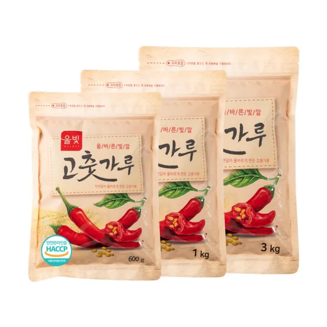 올바른빛깔 고춧가루 굵은가루(김치용) / 고운가루(조미용) 1kg 600g 3kg (올빛 황금고춧가루), (3)_굵은가루 (김치용)_3 kg 구매