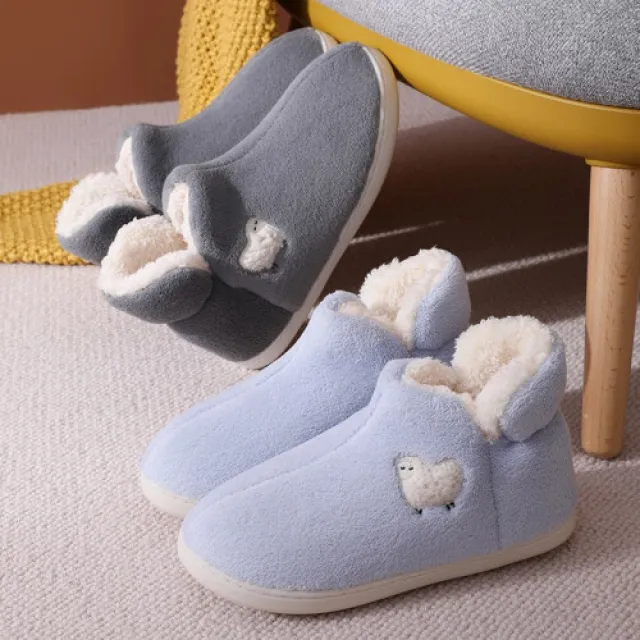 멜라또 겨울커플 슬리퍼녀 러블리백 굽털홈룸 넉살월자구두 가정용 보온면화남 하늘색 38-39 (37-38에 적합)
