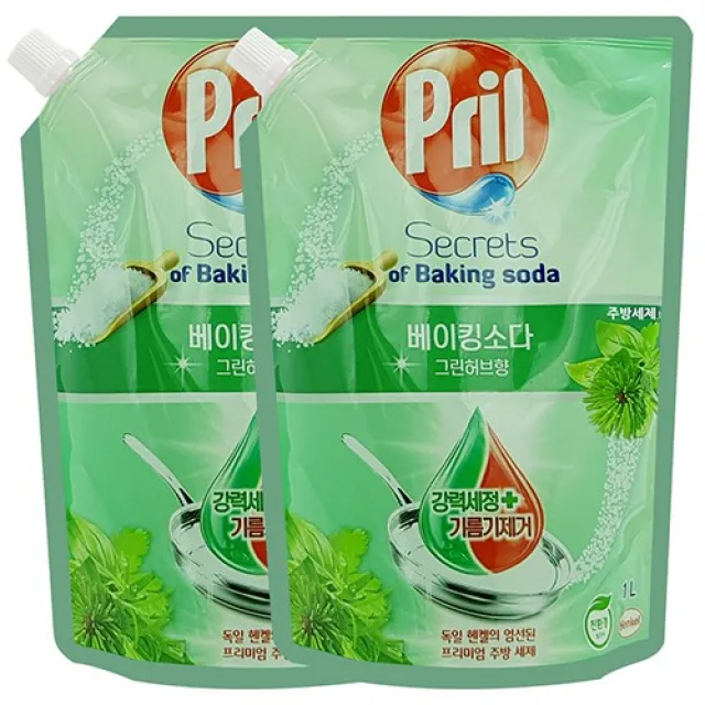 프릴 허브향 1000mlx2개 리필 고농축 1종 과일 야채 세척 친환경 퍼실 주방 세제, 2 refill 구매
