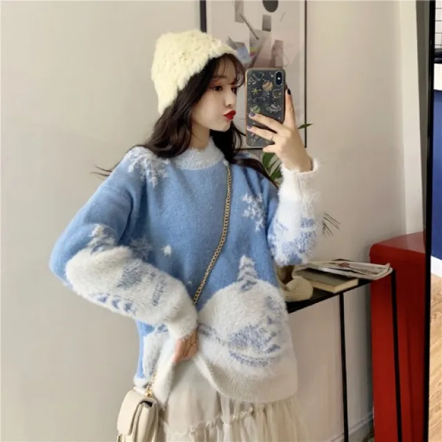 수입산 여성 스웨터 와이드핏에 가을겨울 2020 크리스마스 스노우하우스 노련미