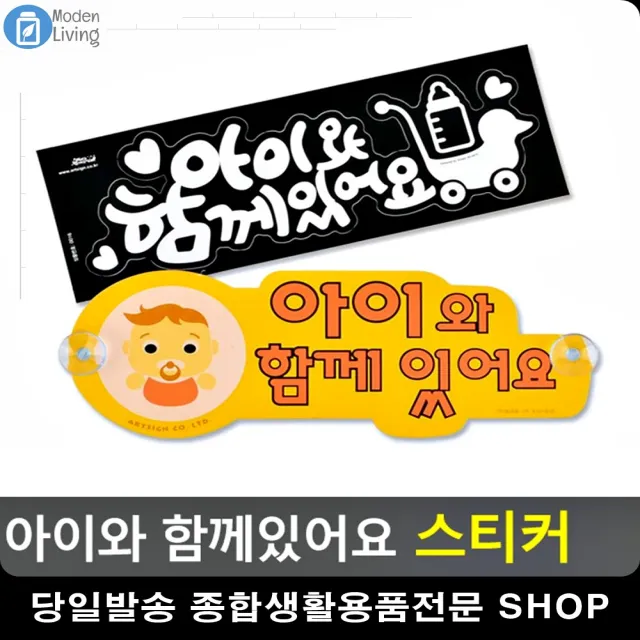 아이 동승 안내 안전 운행 차량 스티커 자동차악세사리 리빙용품 자동차실내꾸미기, 노랑(흡착판) 구매