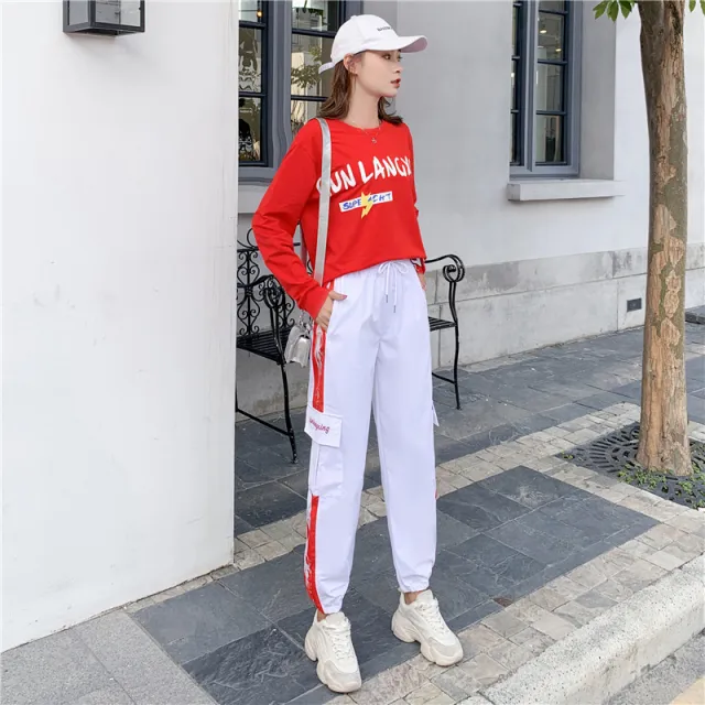 더블에스 겨울 가을 꿍꿍이수작 여성 힙합 플라자 예보 무용복 헬스 피트니스 체조복, F122 화이트 레드 긴바지 _024