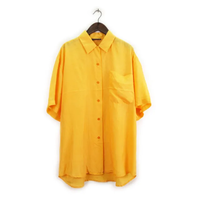 100 실크 누에실 샌드워싱 전력 방적함 엘로우 매니쉬 와이셔츠 배기 이지