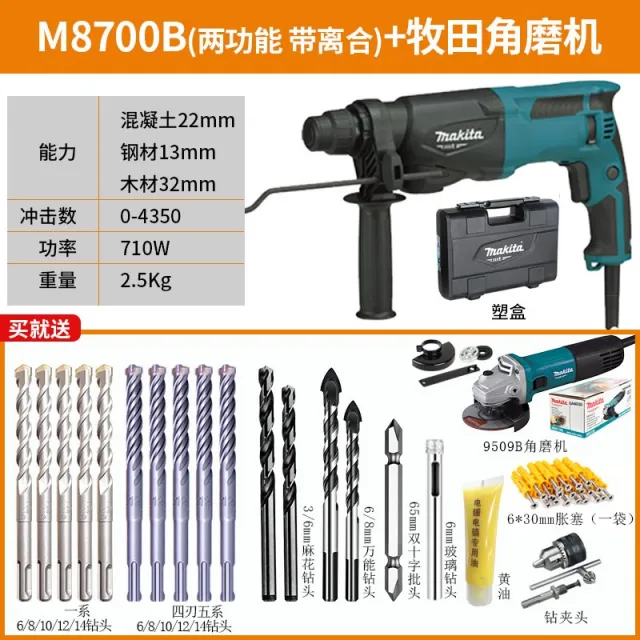 목전 M8700B전기해머 임팩트드릴 투웨이 다기능 가정용 전기드릴 전업 형 삼기능, M8700B 연삭기 2 기능 710