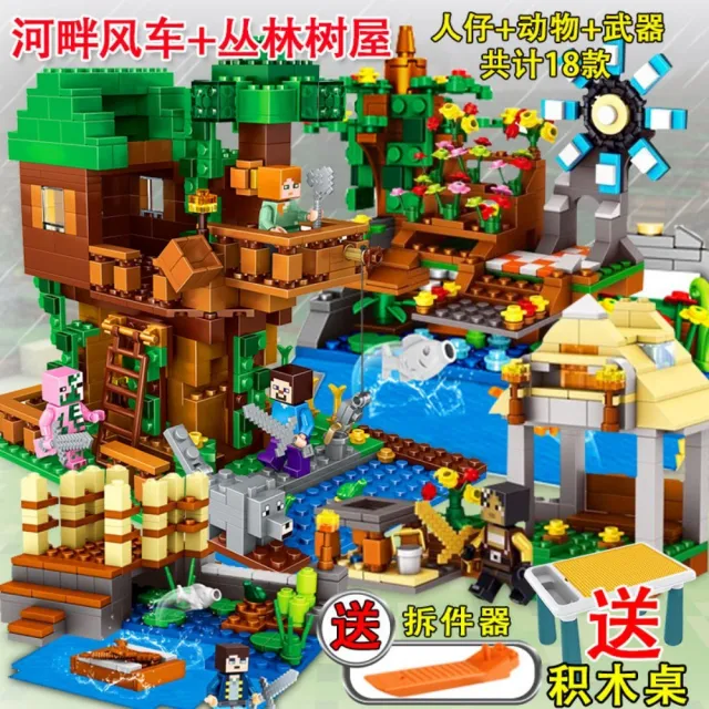 마인크래프트 산속 동굴 중국 호환 레고 블록 전시품, 삼림강변 풍차나무집[블록형 테이블웨어] 구매
