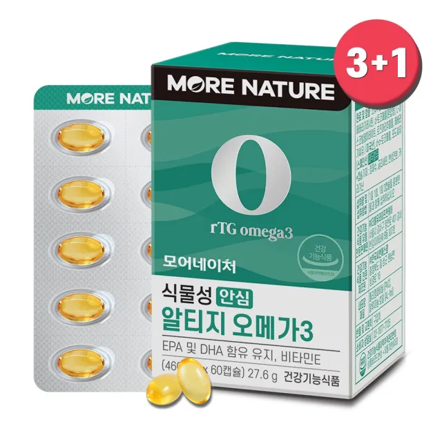 모어네이처 식물성 rTG 알티지 오메가3 60캡슐 임산부 혈행 개선 효능 식물성 1개월분 60캡슐, 1box 구매