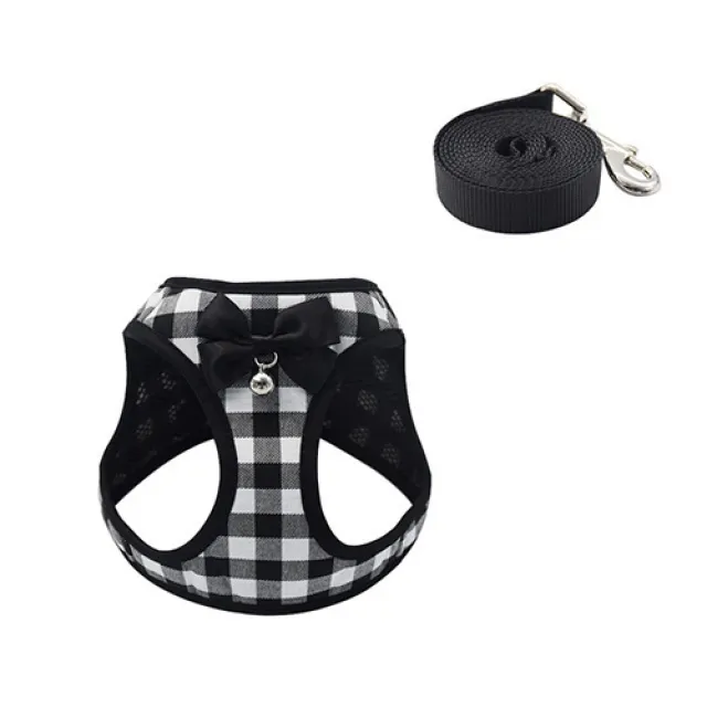 리젠스 고양이 리본방울 체크 하네스 세트, 블랙