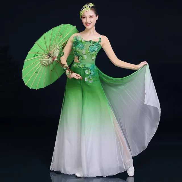 쿠키의행복 공연복 클래식 무용 출복함 여성 샤랄라 차이나 문예 고사를 치르다 독무 퍼포먼스 자스민꽃 애정 우산 댄스복장 구매