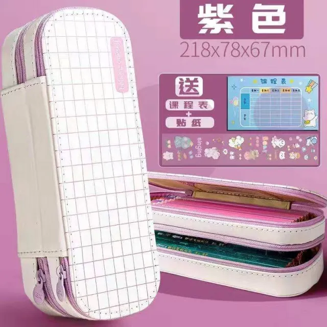 Mar.12 186번 필통녀 심플ins조대용량 캔버스 이층중.중.고생 문구함 아동소녀 마음 사랑스런 필통 남자아이의 개성있는 캐릭터 문구팩Z, 1_[플러스 21cm] 보라색 체크 / 교과 과정 표를