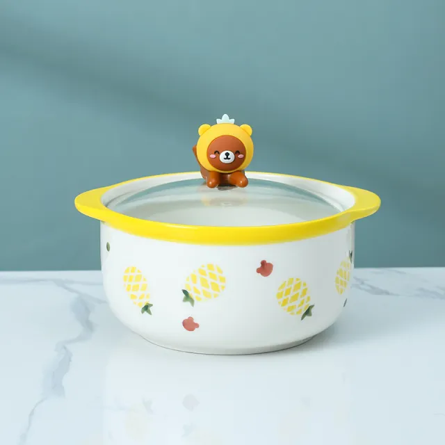 Mar.01 83번 귀여운 소녀 마음 도자기로 만든 라면 그릇 ins 바람기 기숙사 학생 집에 대용량 밥그릇 1개비Z, 그릇. - 파인애플 곰.
