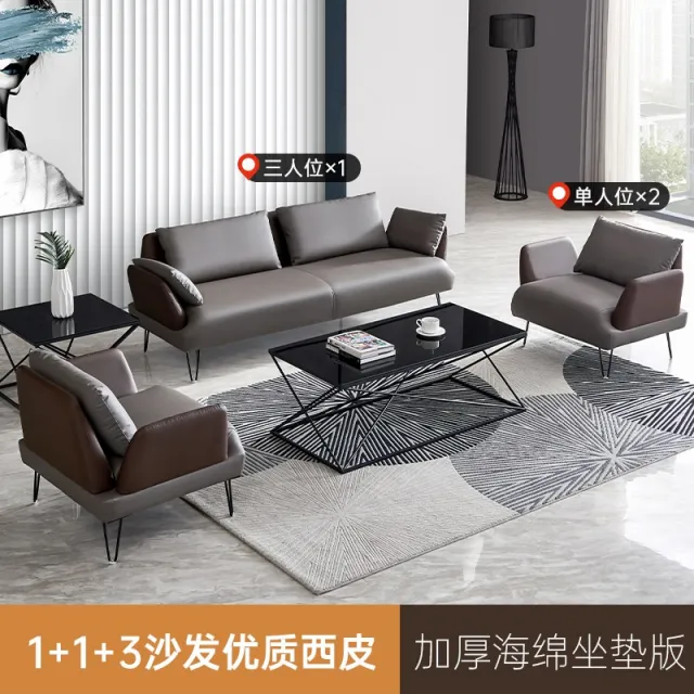 DIPYLON 사무실 사무용 소파 3인승 미니어처 테이블 콤비 비즈니스 면회실, 1+1+3 소파 베지터블 시피(두툼한 쿠션)) 구매