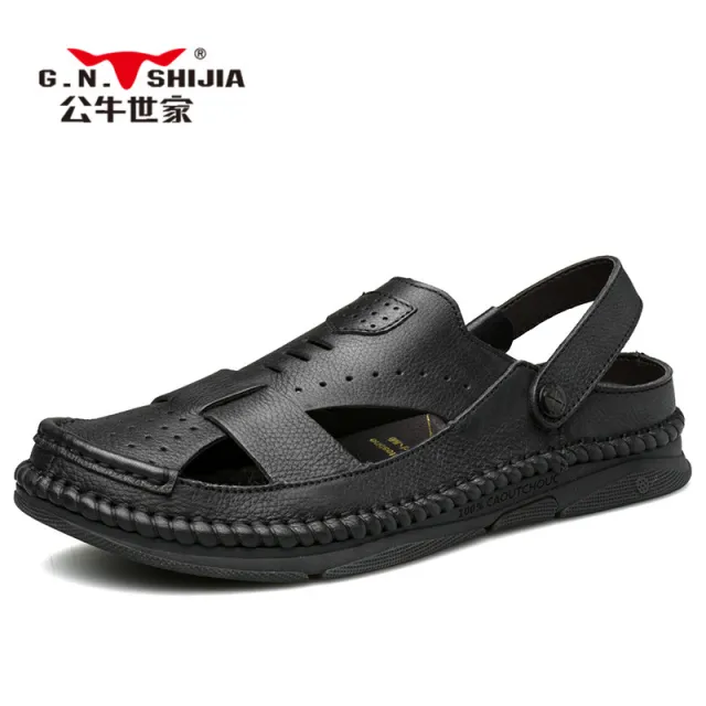 셀럽샵 불세출의 세가 남자 리얼가죽 소프트 밑창 논슬립 미끄럼방지 방취 핏아우터 투웨이 중년 인 아버지 소가죽 슬리퍼