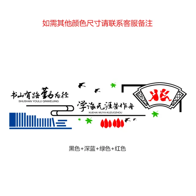 세컨드플랫폼 면학 배치 도서 관 교실 문화의 담장 격려 열람실 벽 스티커 그림, 블랙 디프블루 레드 그린