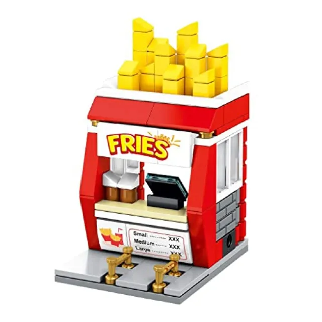 독점적 인 미니 도시 - Frie French Fry Stand - 사용자 정의 디자인 벽돌 - 주요 브랜드와 호환 가능, 본상품 구매