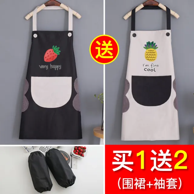 Apr.19 197번 앞치마 가정용 주방 방수 방유여동 상의 갓난쟁이 남자 귀여운 데이 허리Z, 1_딸기 블랙 1 벌 + 그레이 파인애플 1 벌 (목 구매
