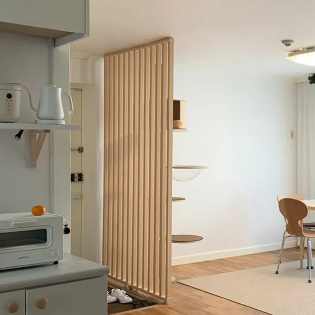 우드레이 셀프 가벽 인테리어 스트라이프 파티션 원목 파티션 주방 사무실 침실 거실 원룸 현관 공간분리 나무 우드 가림막 칸막이 가벽 만들기, 화이트