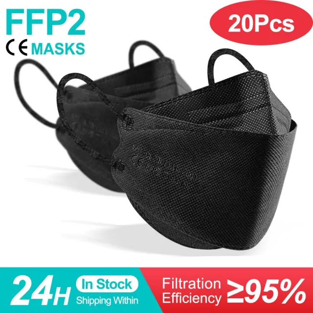 컬러 피쉬 마스카라 FFP2 KN95 마스크 한국 인증 마스카라 fpp2 동질가 호흡기 ffp2mask ce 재사용 가능한 마스크 마스크, adult black 20pcs_7