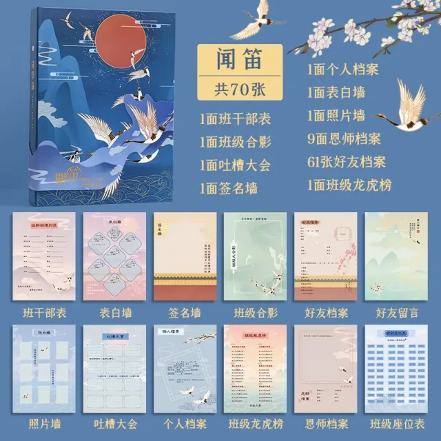 ARK Village 엔틱 동창생을 졸업하다 기념 책자 빈티지 차이나 6 년 급 독창적 틱톡 개성적인 동창회 목록 중학교, 몽환 성운 -구름과 달의 모습 / 7