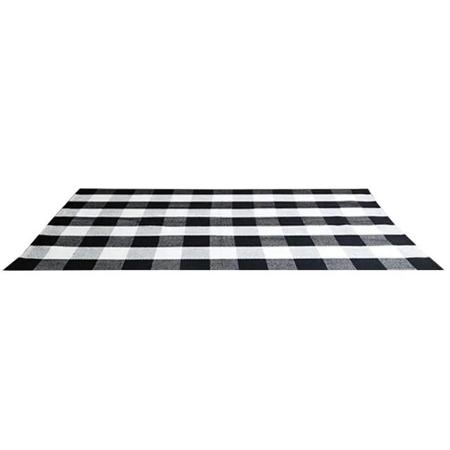 버팔로 격자 무늬는 계층화 문 매트 세척 카펫 러그 -면 손으로 짠 실내 / 실외 지역 양탄자를 확인, 하나, 검정, 흰색 구매