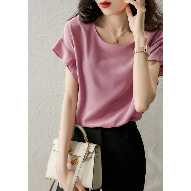 햄언니네가게 라운드넥반팔티 노 SYMG 웃음누각 있다 의식감 프릴 소매 고질 누에실 물방울누늬 티셔츠 구매